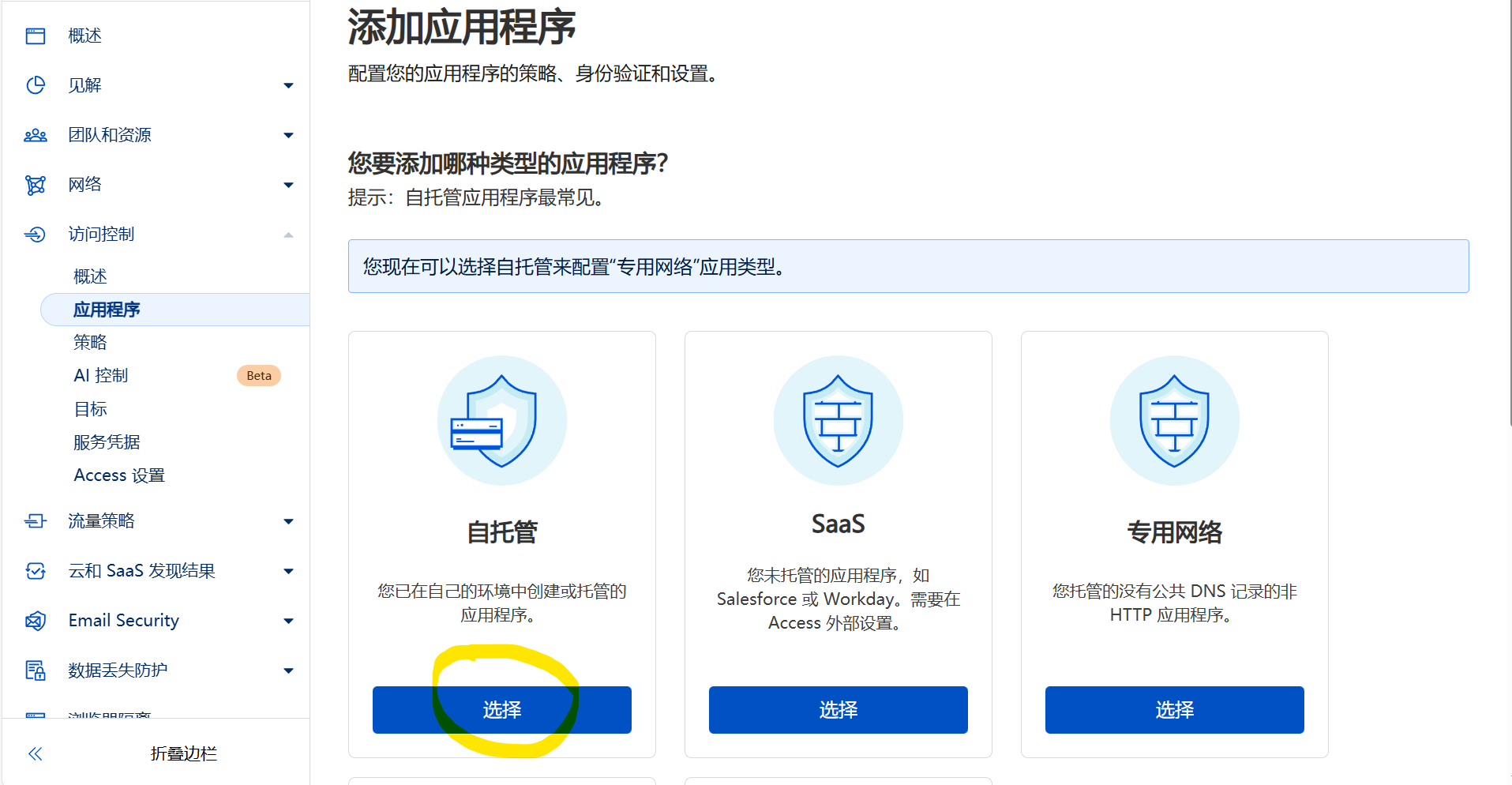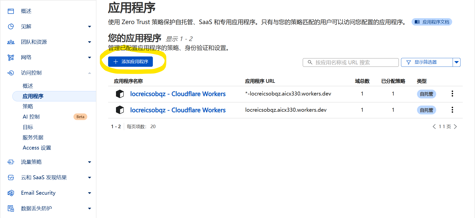 • 创建应用程序:Zero Trust 访问控制 应用程序