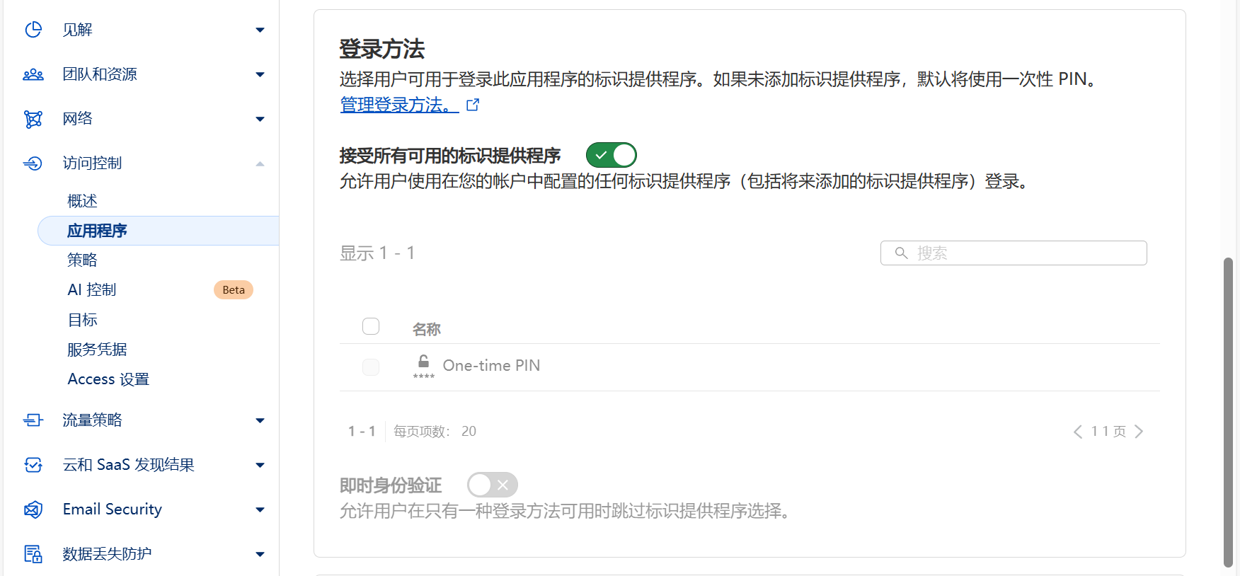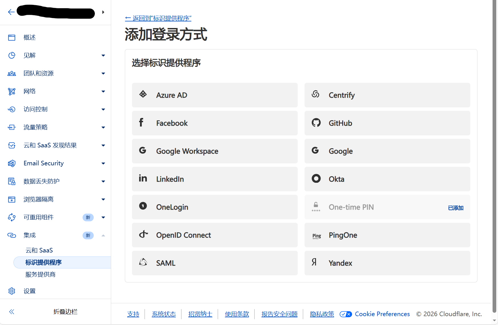 选择自己心仪的登录方式,再点击右下角的下一步,后续可以问AI,或查阅cloudflare官方文档,感兴趣可以DIY,设置完成后 3.2.3 登录方法 会新增对应的登录方式